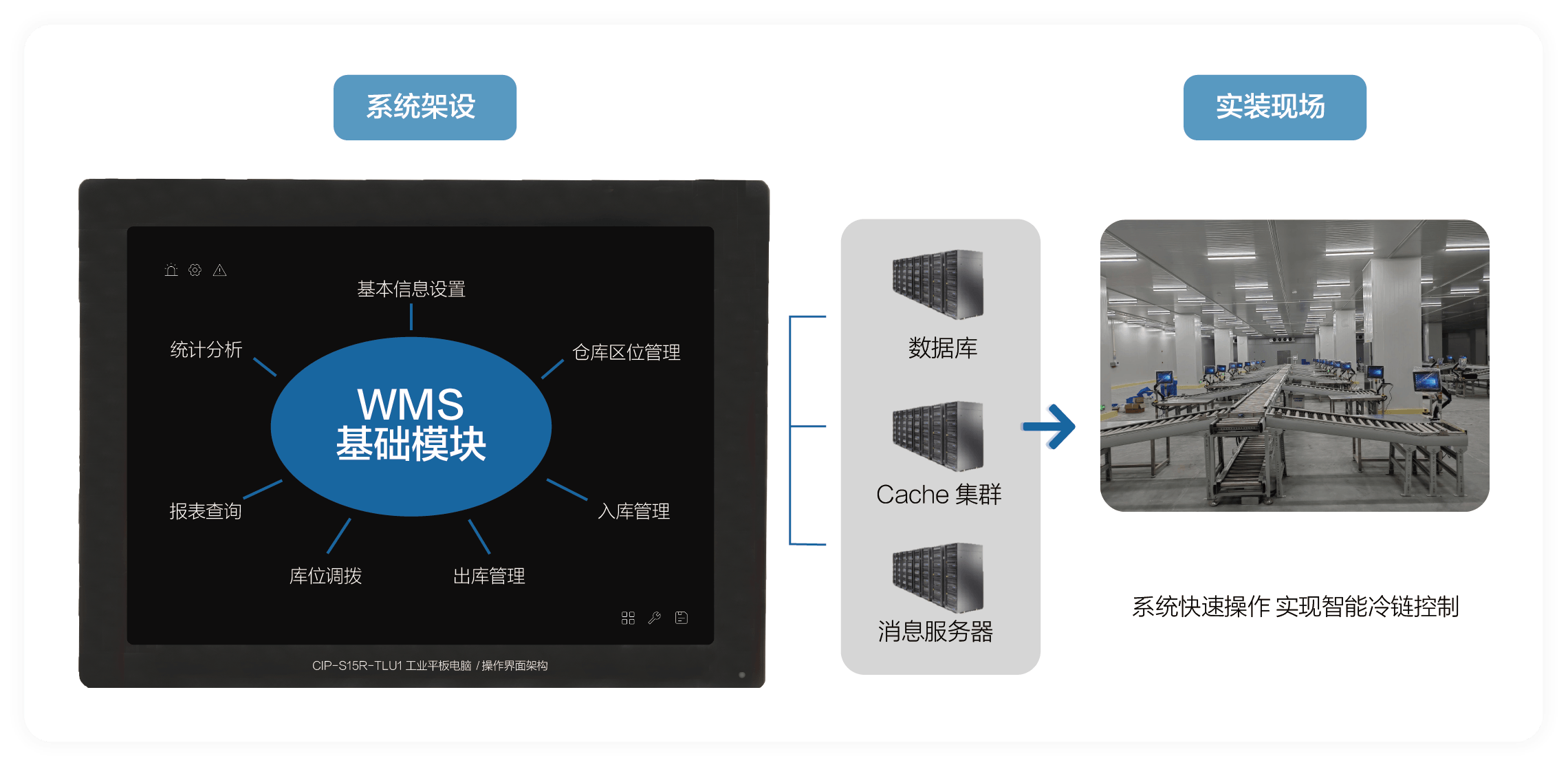 基于用户需求,九州酷游提供基于CIP-S15R-TLU1工业平板电脑为核心计算单元的智慧冷链仓储物流系统解决方案,该方案具备以下优势: